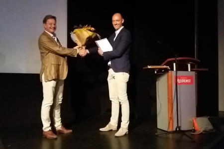 Tijdens de Sandwichcursus juni 2017 is de Bart Wiarda prijs uitgereikt aan de sprekers met de beste evaluaties van hun parallelsessie in 2016. Birgitta Velthuis (SWC Neuroradiologie) ontving de prijs als ervaren radioloog en gaf een korte presentatie over de relatie tussen hart en brein. Ivo van den Elskamp (SWC MSK) ontving de prijs als jong talent en gaf een korte presentatie over jicht en reumatoïde artritis. De prijs werd uitgereikt door Geert Lycklama à Nijeholt, lid van de Commissie Sandwichcursus. Hij memoreerde de bijdrage van Bart Wiarda aan de huidige vorm van de Sandwichcursus.