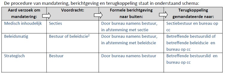 Een gemandateerde brengt persoonlijke expertise in en draagt daarbij het NVvR-beleid uit. De gemandateerde levert zodoende een bijdrage aan beleidsvorming buiten de vereniging. Daarnaast heeft de gemandateerde de verantwoordelijkheid om informatie over het proces of inhoud aan de NVvR terug te koppelen. In de Leidraad mandatering NVvR is dat schematisch weergegeven.