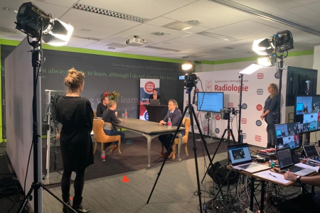 Vanuit "studio Sandwichcursus" in de ReeHorst is de eerste SWC online van start gegaan. Met Abdominale radiologie is op dinsdag 10 november het spits afgebeten. De cursusleiders zorgen voor de inleidingen vanaf de presentatietafel, de sprekers stellen in hun presentaties online vragen aan de deelnemers en via een chat-functie kunnen de deelnemers reageren.